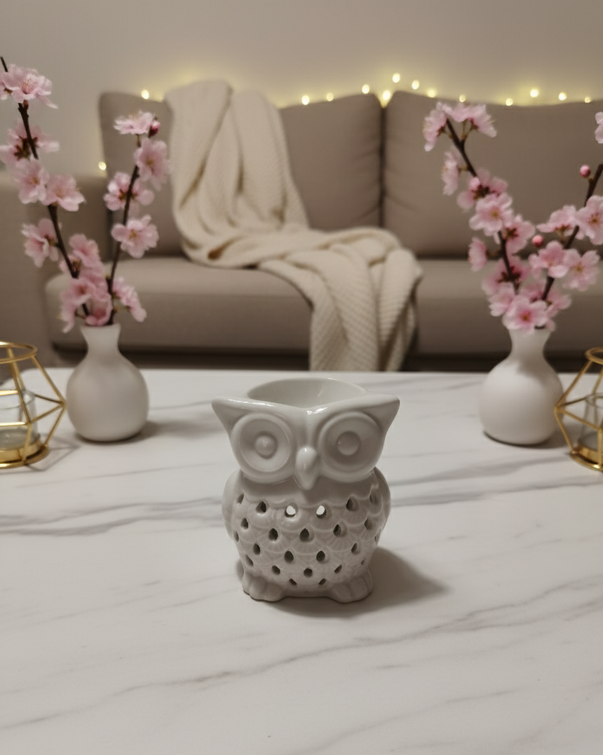 Pequeño pero lleno de encanto, nuestro quemador Búho 🦉 es perfecto para llenar tu hogar de aroma y dulzura. Hecho de cerámica, desprende una luz suave mientras derrite tus wax melts favoritos, creando una atmósfera acogedora y mágica.