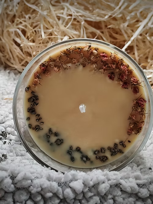 Esta vela, hecha a mano con cera de soja 100% natural, es una opción sostenible que no contiene petróleo.