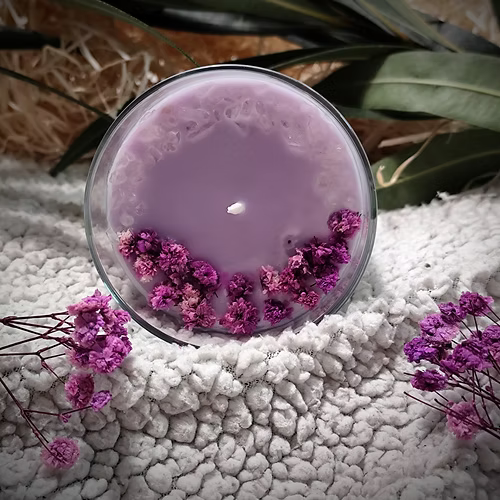 - Flores secas de color lila.