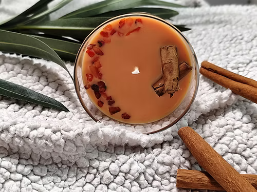 Esta vela, hecha a mano con cera de soja 100% natural, es una opción sostenible que no contiene petróleo.
